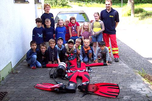 (jc) (ah) In zwei Gruppen waren die "Maxi"-Kinder des Kindergartens Arche Noah zu Besuch bei der DLRG Eberbach. Beate Sauerborn und ihre BetreuerInnen vom Kindergarten in der Berliner Straße waren mit jeweils 15 Kindern gemeinsam bis zur DLRG in der Au gelaufen. Nach dem weiten Fußweg stärkten sich die Kleinen bei einem Vesper. Danach wussten Heinz Thöne und Andreas Häffner einiges Interessantes über die DLRG und deren Aufgaben zu erzählen. Die Kinder erfuhren unter anderem, wie hoch das höchste Hochwasser in der DLRG stand oder was ein Rettungstaucher an Ausrüstung benötigt. Als Highlight zum Abschluss durften dann alle Kinder im Motorrettungsboot "Albatros" mitfahren, was die Kleinen sichtlich genossen.