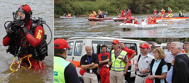 Bei der Übung sollten - aufgeteilt in drei Züge - 34 Einsatztaucher mit Unterstützung von sieben DLRG-Booten eine im Neckar untergegangene Person auffinden.