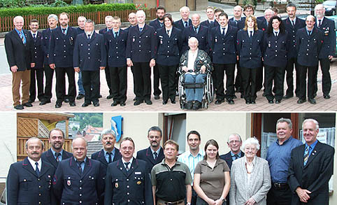80 Jahre im Dienst der Allgemeinheit Die Freiwillige Feuerwehr Neckargerach feierte am vergangenen Wochenende ihr 80-jähriges Bestehen. Dabei gab es auch Ehrungen. Unsere Fotos zeigen die Feuerwehr (oben) und die Geehrten zusammen mit stellv. Kreisbrandmeister Erich Wegele (links), Kreisjugendfeuerwehrwart Nikolaus Klasan (5.v.l), Gesamtkommandant Trudbert Link (4.v.l.), Abteilungskommandant Uwe Gramlich (2.v.l) und Bürgermeister Peter Kirchesch (rechts). (Fotos: Baumgartner)