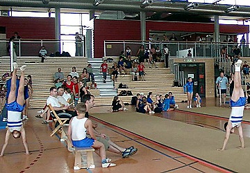 (bro) (jl) Am ersten Wochenende im Juli fand in Heidelberg-Wieblingen das diesjährige Gaukinderturnfest des Turngaus Heidelberg statt. Auch in diesem Jahr nahmen wieder Aktive des TV Eberbach teil. Was in den letzten Jahren in einem starkem Sportkreis wie Heidelberg kaum möglich war, gelang dem hoffnungsvollen Turnnachwuchs in diesem Jahr. So konnten die Turner mit ihren Leistungen im Wahlwettkampf durchweg überzeugen. Dominik Köhler und Lars Springer schafften es bei den D-Schülern auf den 2. und den 6. Platz in einem Feld von fast 30 Teilnehmern. Dies war schon eine Glanzleistung. Aber noch besser schlugen sich die E-Schüler. Hier gelang es mit Nikolai Wollkopf (Platz 1) und Lucas Brenneis (Platz 3) gleich zwei Eberbachern, sich auf dem Treppchen zu platzieren. In dieser Altersklasse, in der ebenfalls ca. 30 Turner antraten, schafften es auch Lasse Nohe (6.) und Sandro Oswald (7.) unter die ersten zehn. Für die Zeit zwischen den Wettkämpfen und der Siegerehrung hatte der ausrichtende Verein, TSV Wieblingen, noch einen lustigen "Feuerwehr Dreikampf" veranstaltet. Dieser verlangte von den Kindern nicht nur einiges an Geschicklichkeit, sondern auch einen gewissen Teamgeist.