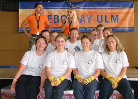 Tae Bo- Damen der Budokai Asahi beim Sommer-Event in Ulm (Foto:privat)(jc) (mf) Ein sehr hartes, aber auch erfolgreiches Wochenende hatten die zehn Tae Bo-Damen der Budokai Asahi Eberbach e.V., die am 2. Juli mit Ihrer Trainerin Marina Friehs das Sommer-Event in Ulm besuchten, bei dem sie drei Top Trainern kennen lernen durften, mit denen Marina Friehs auf der großen Bühne vor 300-400 Menschen stand. Das Wochenende war die perfekte Prüfungsvorbereitung, denn am 9. Juli werden elf Damen die Prüfung zur gelben Bandage und acht Damen zur orangenen Bandage ablegen. Die Prüfung findetim Fitness Studio "Palestra" in der Au statt und beginnt um 10 Uhr.