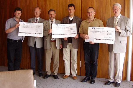 Erlös aus Frühlingskonzert der Volksbank Neckartal übergeben Ralf Sutter (Musikschule Schönau), Volksbank-Vorstandsvorsitzender Herbert Hinterschitt, Vorstand Friedrich Heuser, Frank Rinne (Musikschule Neckargemünd), Tobias Soldner (Musikschule Eberbach und Vorstand Wilfried Herbold (Foto:A.Claussen)(jc) (ac) Am gestrigen Montag wurde an die Musikschulen Eberbach, Neckargemünd und Schönau, sowie die Schlossfestspiele Zwingenberg ein Betrag von insgesamt 5.000 Euro verteilt. Der Betrag stammt aus dem Erlös des Frühlingskonzerts der Volksbank Neckartal. Herbert Hinterschitt betonte bei der symbolischen Scheckübergabe, dass dem Vorstand der Volksbank die Musikförderung sehr am Herze liege. Tobias Soldner bedankte sich im Namen der Geförderten, die angesichts der angespannten Finanzlage der Musikschulen, diese Spende sehr gut zu verwenden wüssten.