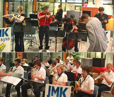 Waren die Saloniker hierorts keine Unbekannten, spielte die JMK-Bigband der Joseph-Martin-Kraus-Musikschule in Buchen zum ersten Mal in Eberbach. Mit Duke Ellingtons "It don´t mean a thing" lieferten sie einen beschwingten Einstieg, der gleich die Grenzen des Raumes aufzeigte. Die Band, 1994 ins Leben gerufen, existiert nun schon in der dritten Musiker-"Generation". Alles perfekt auf einander eingespielte Instrumentalisten, von Alexander Monsch zupackend dirigiert, der auch mal selbst mit der Trompete ins musikalische Geschehen eingreift. Sie swingen gekonnt Titel wie "Hay Burner" von Sammy Nestico und begleiten die aparte Karolina Jochim bei Stücken wie "The Girl from Ipanema" und "Mr. Zoot Suit". Mit "Mambo Jambo" von Perez Prado liefern sie einen mitreißenden Schluss.