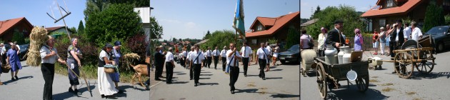Historischer Festumzug begeisterte die Zuschauer Der historische Umzug zu Ehren 125jährigen Bestehens des MGV 1880 Haag lockte viele Zuschauer auf die Straßen (Fotos: Böhm)(ub) Der Männergesangsverein (MGV) 1880 Haag hatte keine Kosten und Mühen gescheut, sein 125jähriges Bestehen gebührend zu feiern. Mit einem Festbankett wurden die Feierlichkeiten bereits am Freitag eröffnet und zusammen mit Stargast Joana und befreundeten Gesangsvereinen gefeiert. Über 1000 Zuhörer lauschten bekannten Liedern, ehe die aus Mannheim stammende Chansonsängerin und Liedmacherin Joana in Begleitung des virtuos spielenden Adax Dörsam aus Birkenau die Gäste mit mannemerisch-schelmischen Mundart- und internationalen Folkloreliedern in ihren Bann zog. Trotz des umfangreichen Festprogramms, das nach zahlreichen Ehrungen, Liedvorträgen und einem interessanten Filmvortrag über die Vereinschronik des MGV Haag erst gegen Mitternacht endete, waren alle Gäste restlos begeistert. Hans-Jürgen Heiß führte souverän durch das Programm und freute sich, auch den befreundeten Schweizer Männerchor Sennwald- Haag aus dem Kanton St. Gallen begrüßen zu können. Samstags stand für die Jugend die Gruppe SHARK auf der Bühne. Am Sonntag endeten die Feierlichkeiten mit einem hervorragend gestalteten historischen Festumzug durch Haag. Sage und schreibe 92 Gruppen waren teils mit Ziehwägelchen, als Holzmacher, Jäger, Landwirte mit Stier, Esel, Ziegen oder Pferd und sogar als Waschweiber unterwegs. Jeder konnte sich vorstellen, wie die Leute damals lebten. Neben historischen Berufen wurden auch alte Motorräder, Automobile, Schlepper und Geländewagen vorgefahren, die bereits manches Jährchen auf dem Buckel hatten. Bürgermeister Roland Schilling und Ehrengäste wie Ehrenbürger Hermann Münz mit Gattin, die Ehrenmitglieder des MGV Haag, Adolf Boch und Günter Mende sowie Ehrendirigent Hans Adam Ziegler,wurden mit festlich geschmückten Kutschen durchs Dorf gefahren. Alle Gesangsvereine aus den beiden Orten Haag und Sennwald-Haag, Reichertshausen, Allemühl, Schönbrunn, Schwanheim, Waldwimmersbach, Neunkirchen, Oberhainbrunn, Dilsberg, Mörtelstein und Rothenberg begleiteten den Festumzug, ehe sich alle nochmals zum gemütlichen Ausklang des Jubiläums mit Peter Schad und seinen Oberschwäbischen Dorfmusikanten im Festzelt trafen.