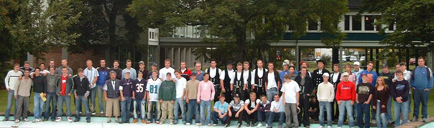 Abschlussprüfung an der einjährigen Berufsfachschule der Theodor-Frey-Schule Eberbach 1-jährige BFS mit Lehrern in der Neckaranlage vor der TFS (Foto:privat)(jc) (rd) An der einjährigen Berufsfachschule im Bereich Elektrotechnik, Metall mit Kfz-Technik sowie Bautechnik haben im Jahr 2005 insgesamt 52 von 72 Schülern und Schülerinnen die Abschlussprüfung bestanden. Die meisten von Ihnen werden in ein festes Ausbildungsverhältnis übernommen. Aufgrund besonders guter Leistungen erhielt Roman Wieprecht einen Preis und Alexander Friedel und Benedikt Kleiser nahmen eine Belobigung entgegen. Die einjährige Berufsfachschule an der Theodor-Frey-Schule Eberbach bietet einerseits jungen Leuten auf der Suche nach einem Ausbildungsplatz aber auch Ausbildungsbetrieben große Vorteile.