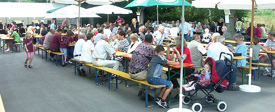 Traditionelles Musikfest unter Linden Bei Sonnenschein und angenehmen Temeperaturen findet heute das Musikfest der Feuerwehrkapelle Waldkatzenbach statt. (Foto: Baumgartner)(tb) Bei Sonnenschein und angenehmen Sommertemperaturen feiert heute die über die Waldbrunner Gemeindegrenzen bekannte Feuerwehrkapelle Waldkatzenbach ihr traditionelles Musikfest. Gefeiert wird direkt am Fuße des Katzenbuckels unter den Linden im Hof des Bürgersaals von Waldkatzenbach. Dabei steht das Fest am heutigen Sonntag ganz im Zeichen der Blasmusik. Morgens begann man nach den Gottesdiensten mit einem zünftigen Frühschoppen, der von der Musikkapelle Kleiner Odenwald Allemühl umrahmt wurde. Für das leibliche Wohl war dann beim gemeinsamen Mittagessen bestens gesorgt. Bei Kaffee und Kuchen spielt in den Mittagsstunden die Feuerwehrkapelle Aglasterhausen auf. Im weiteren Programm ist dann später der Musikverein Neunkirchen zu hören. In den Abendstunden wird dann der Musikverein Michelbach für die musikalische Unterhaltung der zahlreichen Besucher sorgen.