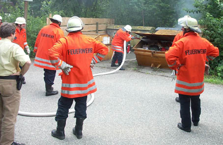 Brandursache bisher unbekannt Vermutlich durch Unachtsamkeit ist wohl heute mittag ein Müllcontainer im Feriendorf Waldbrunn in Brand geraten, der durch die Feuerwehren aus Waldkatzenbach und Strümpfelbrunn schnell gelöscht werden konnte. (Foto: Baumgartner) (tb) Über Funk und Sirenen wurden heute gegen 14:30 die Feuerwehren aus Strümpfelbrunn und Waldkatzenbach alarmiert und mussten ins Feriendorf Waldkatzenbach ausrücken. Dort war - wie zuletzt im Vorjahr - aus bisher unbekannter Ursache ein Müllcontainer in Brand geraten, welcher aber durch das schnelle Eingreifen der Feuerwehren recht schnell gelöscht werden konnte. Wie es dem Brand kam, war nicht zu erfahren. Vermutungen gehen davon aus, dass eventuell Reste von Grillkohle oder heiße Asche in den Container eingebracht wurden. Über den entstanden Sachschaden ist noch nichts bekannt. Jedoch dürfte der Einsatz der Feuerwehren aus Strümpfelbrunn und Waldkatzenbach, sowie der ebenfalls alarmierten Ortsgruppe Oberdielbach des DRK den Verursacher teuer zu stehen kommen.