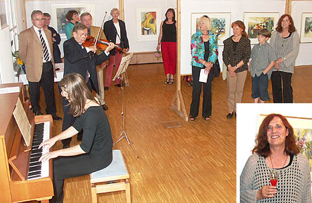 Nach der Eröffnung der Ausstellung hatten die Anwesenden Zeit, sich mit der Künstlerin über ihre Bilder zu unterhalten. Für die passende musikalische Umrahmung der Ausstellungseröffnung sorgten Christiane Weiland (Klavier) und Werner Kasper (Violine).