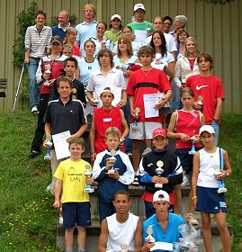 Turniererfolge für Nils Rothenberger Nils Rothenberger bei der Siegerehrung in Mosbach: 2. Reihe von unten, 1. von links. (Foto:privat)(jc) (js) Bei drei gut besetzten Jugend-Turnieren in Mosbach, Walldorf und Hockenheim konnte Nils Rothenberger zwei erste und einen dritten Platz erreichen. Vom 29. bis 31. Juli fanden auf der Anlage des TC Grün-Weiß-Rot Mosbach die offenen Jugend-Odenwaldmeisterschaften statt. 134 Meldungen aus Rheinland-Pfalz, Bayern und Baden-Württemberg ließen ein hohes Niveau erwarten. In der Klasse U 10 konnte der neunjährige Nils Rothenberger vom TC Blau-Weiß Eberbach seinen im letzten Jahr gewonnenen Titel erfolgreich verteidigen.