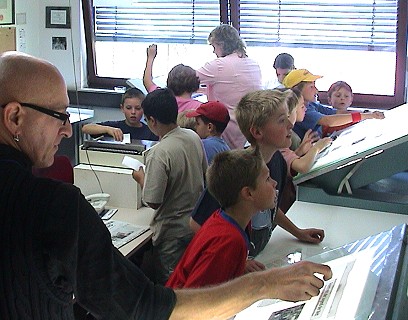 Ferienspaß-Kids sorgten für News (Foto:C.Richter)(cr) 20 kleine "Mitarbeiterinnen" und "Mitarbeiter" sorgten heute in den Räumen der Druckerei Krauth dafür, dass morgen das Aktuellste über den Eberbacher Ferienspaß in der Eberbacher Zeitung zu lesen ist. Von der Recherche bis zum fertigen Blatt erklärten die Redakteure Friederike Blaser und Peter Zechel den Kids alles, was wichtig ist, um eine Zeitung herzustellen. Nach einer Stärkung mit Brezel und Limonade durften die Kinder richtig Hand anlegen und eine Zeitungsseite gestalten. Als Belohnung konnten sie "ihre" Seite mit ihrem topaktuellen Text und viele Informationen über neue und alte Herstellungsmethoden vom Eberbacher "Stadt- und Landboten" mit nach Hause nehmen.