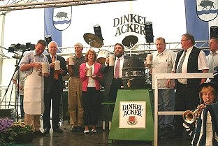 Buntes Programm und viele Besucher Bürgermeister Bernhard Martin, MdB Bernd Schmidbauer (CDU), MdB Gert Weisskirchen (SPD), MdL Elke Brunnemer (CDU), MdEP Dr. Thomas Ulmer (CDU), Festwirt Gerhard Rebscher, Siegfried Mader von der Brauerei Dinkelacker und der langjährige Marktmeister Fritz Haas. (Foto:Böhm)(ub) Drei Donnerschläge verkündeten dem erfahrenen Kuckucksmarktbesucher, dass der traditionelle Fassbieranstich durch den Bürgermeister erfolgreich war und der Kuckucksmarkt für fünf Tage seine Pforten öffnet.
