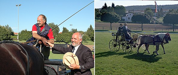 der Sieger der kombinierten Wertung Zweispänner, rechts: Impressionen vom Fahrturnier. (Fotos:privat) (bro) (ra) Das Wetter präsentierte sich am Sonntag, 28. August, von seiner angenehmsten Seite, und in der Stried war alles bestens vorbereitet. So konnte der Reit- und Fahrverein Oberzent (RFVO) sein diesjähriges Fahrturnier abermals als Erfolg verbuchen. In der Zweispänner-Gesamtwertung siegte der Beerfeldener Fahrer Eugen Schäfer. Matthias Mader konnte wegen der Erkrankung eines seiner beiden Haflinger nicht antreten. Vormittags gab es Dressurvorführungen, nachmittags die beim Publikum so beliebten Hindernisprüfungen. Dabei wurde in Marathonanspannung gegen die Uhr gefahren, und es gab für Teilnehmer und Publikum spannende Momente. Alles klappte wie am Schnürchen, so dass sich Turnierchef Herbert Mader nach einem anstrengenden und langen Tag zu Recht freuen konnte. Der Dank der Ausrichter ging neben den Fahrern und dem Fachpersonal auch an die Helfer und Sponsoren. Wer sein Herz für den Fahrsport entdeckt hat, braucht auf das nächste Ereignis nicht lange zu warten. Am 15. Oktober laufen die Kutschen in der Reithalle ein, es geht um die Qualifikation zum Mitsubishi Cup.