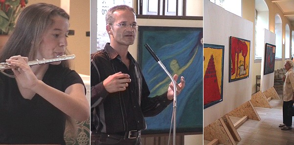 Die Ausstellung ist noch bis Mitte Oktober in der Michaelskirche täglich von 10 bis 12 Uhr und von 14.30 bis 16.30 Uhr zu sehen (außer Samstagnachmittag). Die Vernissage wurde von Viktoria Kubasow (Orgel) und Theresa Pfeifer (Querflöte) musikalisch gestaltet.