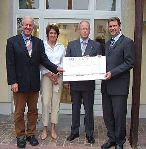 (jc) (mm) Einen symbolischen Spendenscheck über den alljährliche Sponsoringbetrag sowie einen Betrag aus dem Erlös des Frühlingskonzertes der Volksbank Neckartal in Höhe von insgesamt 5.000 Euro überreichte jetzt Vorstandsvorsitzender Herbert Hinterschitt an den 1. Vorsitzenden der Schlossfestspiele Zwingenberg, Detlef Piepenburg und dessen Stellvertreter, Bürgermeister Peter Kirchesch. Dabei betonte der Volksbank-Chef, dass ihm die Musikförderung sehr am Herzen liege. Insbesondere die Schlossfestspiele Zwingenberg werden schon von Beginn an von der Volksbank Neckartal großzügig unterstützt, da sie eine bedeutende kulturelle Einrichtung für die gesamte Region darstellen. Gleichfalls wolle man durch diese Form des Sponsoring den Menschen in der Region einen Teil des erwirtschafteten Gewinns der Volksbank wieder zurückgeben, so Hinterschitt.