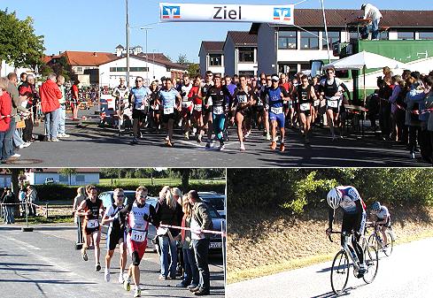 Nach der ersten Laufrunde hatte sich an der Spitze eine Dreier-Gruppe gebildet, darunter auch der Favorit Timo Bracht aus Eberbach, der seine Karriere übrigens beim Skiclub Beerfelden begann und sich im Augenblick auf den Ironman in Hawaii vorbereitet. Eine Sturzverletzung von seinem letzten Start in Monaco macht ihm immer noch zu schaffen. Hinzu kam, dass er gleich zu Beginn der Radrunde einen Defekt am Rad hatte und aufgeben musste. Christoph Bergmann aus Bad Endbach, der sich in dieser Spitzengruppe befand, erwies sich auch als der beste Radfahrer. Auf der letzen Laufstrecke konnte er seinen Vorsprung verteidigen und siegte mit über einer Minute Vorsprung vor dem Sieger 2004 Frank Horlacher von SV Nikar Heidelberg. Jürgen Hampel vom SCB kam als 18. ins Ziel und gewann die Klasse M 40. Damit wurde er auch hessischer Meister. Bei den Damen erwies sich Alexandra Bott von SSC Hanau-Rothenbach nach der ersten Teilstrecke als die stärkste Läuferin. Die deutsche Meisterin Jutta Kammer vom LSV Ladenburg hatte Probleme mit ihrem Rennrad und musste Meike Krebs vom Krefelder Kanu Klub den Sieg überlassen. Insgesamt waren die Frauenklassen viel stärker besetzt als in den Jahren zuvor.