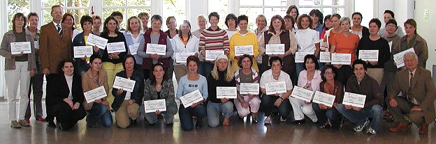 Volksbank sponsert 51 Kindergärten in der Region mit 15.000 Euro (Foto:Claussen)(jc) Anlässlich des gestrigen Weltkindertages hatte die Volksbank Neckartal Vertreterinnen und Vetrreter von 51 Kindergärten aus dem von der Bank "Serviceland" genannten Geschäftsbereich in den "Schwanen" nach Neckarsteinach zur symbolischen Scheckübergabe geladen. Vorstand Ekkehard Saueressig und Marketingleiter Hugo Sablowski, der mit seiner Assistentin Sabine Heckel den Nachmittag organisiert hatte, zeigten sich überaus erfreut über den großen Zuspruch, denn 41 Einrichtungen hatten ihre Mitarbeiter ins hessische Neckartal geschickt um bei Kaffee und Kuchen die Schecks und einige Eckdaten aus der Leistungsbilanz des 240 Mitarbeiter zählenden Unternehmens mit nach Hause zu nehmen. Hugo Sablowski hatte denn auch einige beeindruckende Zahlen parat, welche die Volksbank Neckartal als bedeutenden Steuerzahler und regionalen Sponsor ausweisen. So fließen pro Jahr Steuern an Bund, Länder und die Gemeinden im Geschäftsgebiet, Aufträge an heimische Unternehmen sowie für Förderprogramme in Summe rund 15 Millionen Euro. In den Förderprogrammen vereinen sich die Spenden in Höhe von 144.000 Euro für Schulen, Vereine, Gewerbevereine sowie für Kunst, Kultur und Soziales und eben auch für die gestern bedachten Kindergärten. Jeder jetzt übergebene Scheck hatte einen Wert von 300 Euro, er wurde allerdings bereits vor einiger Zeit von der Bank ausgeschüttet.