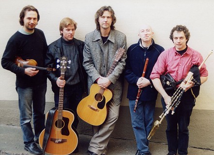 "Eitre" ist die erweiterte Version des skandinavischen Irish-Trad-Trios "Quilty", das im vergangenen Jahr ein erfolgreiches Konzert beim Kulturlabor gab. Neben Dag Westling (vocals, guitar, 5-str.-banjo) und Esbjörn Hazelius (fiddle, voc.) von Quilty sind mit Frederik Bengtsson (double bass), Kevin Ryan (Manchester, UK) an der Flute und Marco Pollier (Frankreich) an den Uillean Pipes weitere ausgesprochen virtuose Musiker im Boot, die wesentlich zum High-End-Profil dieser europäischen Fusion beitragen. Nun zum Quintett angewachsen, bietet Eitre ein furioses Spektrum an Klängen klassischer Irish-Trad-Bands - ein oberflächlicher Höreindruck lässt sofort an Lunasa denken, die hier deutlich konzeptionell Pate gestanden haben.