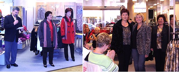 Toni Dress Mode-Präsentation bei Modehaus Müller (Fotos:A.Claussen)(jc) In drei Modeschauen wurde beim Modehaus Müller gestern die aktuelle Herbst- und Winterkollektion der renommierten Hosenmarke "Toni Dress" aus dem oberfränkischen Forchheim präsentiert. Hosenmodelle in Tweed, Fischgrat und Funktionshosen in edlen Optiken sollen Herbst und den Winter erstrahlen lassen, neue Waschungen im Jeansbereich überzeugen, Glitter und Strass den nötigen Glanz in die trübe Jahreszeit bringen. Präsentiert wurden die Hosen, kombiniert mit Oberbekleidung anderer namhafter Marken, von vier Mitarbeiterinnen und Kunden des Modehauses Müller, die bereits mehrfach bei Modeschauen aufgetreten sind. Moderiert wurde die Veranstaltung von Wolfgang Schnurr aus dem Hause "Toni Dress", der am Ende noch einen Gutschein für eine Hose dieser Marke verloste.