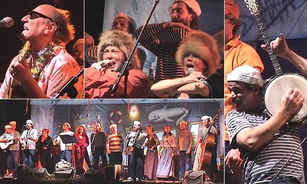 Auf den Spuren der Seefahrer im Odenwald (Fotos:C.Richter)(hr) Mit einem bunten Best-of-Programm feierte der Odenwälder Shanty-Chor vorgestern Abend sein 15-jähriges Bestehen in der Eberbacher Stadthalle. Sechs abendfüllende Programme hat die Truppe um Chorleiter Matz Scheid bisher auf die Bühne gebracht, die meisten davon waren auch in Eberbach zu sehen. Neben Seemannsliedern präsentierte der Chor immer wieder die neuesten Forschungsergebnisse des "Instituts für spekulative Heimatgeschichte" über die bisher unbekannten maritimen Traditionen im Odenwald. Alles dreht sich dabei um den Seefahrer Schann Scheid, der im 19. Jahrhundert in Fränkisch Crumbach gelebt haben soll. Dieser soll als "Held der sieben Weltmeere" für die Verbreitung der Odenwälder Lebensart in alle Welt gesorgt und das Absingen von Seemannsliedern in der völlig trockenen Umgebung des Odenwalds kultiviert haben.