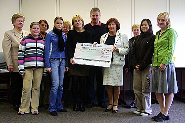 Flohmarktteam der evangelischen Kirchengemeinde spendete 1.000 Euro Die Scheckübergabe. (Foto: privat)(bro) (be) Das Flohmarktteam der evangelischen Kirchengemeinde Eberbach hat den Erlös des diesjährigen Apfeltags für das Projekt "Schülercafé" gespendet. Mit dem Neubau der Mensa für die Schulen im Stadtteil Steige, deren Fertigstellung 2007 vorgesehen ist, sollen die Schüler in diesem Gebäude ein "Schülercafé" erhalten. Seit Januar 2005 besteht eine kooperierende Arbeitsgruppe "Schülercafé", zusammengesetzt aus Schülern der Haupt- mit Werkrealschule und der Realschule Eberbach. Die Schüler sollen nicht nur Nutzer des Treffs werden, sie sollen auch in der Planungs- und Gestaltungsphase und am späteren Betrieb des Cafés aktiv beteiligt werden. Das Café soll nicht nur ein Ort der Begegnung und Kommunikation, sondern auch ein Ort des Lernens sein. Unter der Leitung der Lehrerinnen Karin Kimmich von der Realschule und Aberle von der Haupt- mit Werkrealschule sowie der Schulsozialarbeiterin Birgit Exner vom Jugendreferat Eberbach haben die Schüler bereits Exkursionen in umliegende Schulen unternommen, die schon erfolgreich ein Schülercafé betreiben. Im Mittelpunkt standen Fragen zu Finanzierung, Betrieb und Einrichtung. Die Spende des Flohmarktteams in Höhe von 1.000 Euro soll für die Ausstattung des Schülertreffs verwendet werden. Die Scheckübergabe fand am letzten Donnerstag in der Eberbacher Realschule statt.