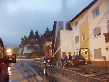 Um 18.05 Uhr traf die JFW aus Kailbach zur Verstärkung ein, die eine Wasserversorgung von einem Hydranten über die TS Kailbach herstellten und nahmen zwei Rohre zur Brandbekämpfung und zur Schützung des zweiten angrenzenden Grundstücks vor. Mittlerweile ist es 18.08 Uhr und die Kameraden aus Hesselbach treffen ein, die ebenfalls die Einsatzstelle mit einem zweiten Lichtmast ausleuchteten. Ein anderer Trupp nahm ein Rohr zu Schützung umliegender Gebäude vor. Die Übung sei sehr positiv verlaufen, es habe nichts auszusetzen gegeben, so die Feuerwehr.