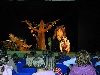 Das mobile Kinder- und Jugendtheater "KiT´Z" aus Ludwigshafen gab das Stück des Elsässers Tomi Ungerer "Das Biest des Monsieur Racine" zum Besten. Für rund 45 Minuten zogen die drei Mitglieder des Ensembles mit ihren kinderbuchgerechten Kostümen, ausdrucksstarker Mimik und dem atmosphärischen Bühnenbild die Besucher des "KNAX-Kindertheaters" der Sparkasse Neckartal-Odenwald in ihren Bann.