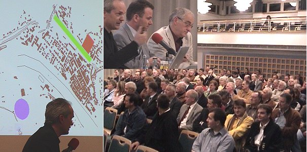 Weichenstellendes Thema am Güterbahnhof Schwerpunkte der Stadtentwicklung gibt es im Bereich Güterbahnhofstraße und auf dem ehemaligen Emig-Gelände an der Pleutersbacher Straße (links). Manfred Janner, Bernhard Martin und Albrecht Streng (v.l.) standen den zahlreichen Zuhörern Rede und Antwort. (Fotos:Richter)(hr) "Bürgernah planen" lautete das Motto einer Informationsveranstaltung, zu der die Stadtverwaltung Bürgerinnen und Bürger sowie Eberbacher Unternehmer gestern ins Rathaus eingeladen hatte. Das Interesse war groß, und die Stuhlreihen im Ratssaal waren gut besetzt. Neben der Information über den aktuellen Stand der Planungen - vor allem in dem Gebiet entlang der Güterbahnhofstraße - konnten im Rahmen einer Diskussion auch Meinungen und Anregungen zur innerstädtischen Weiterentwicklung geäußert werden. Ziel sei es, so Bügermeister Bernhard Martin, dass sich die Planungsvorstellungen im Rathaus und in der Bevölkerung möglichst decken und dass die Stadtpanung für die Bürger berechenbar ist.