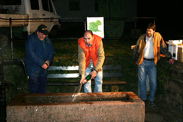 KG Urmel taufte den Urmel-Brunnen Zur Kampagneeröffnung taufte die Karnevalsgesellschaft Urmel nach einer Putzete den "Urmel-Brunnen" in Neckarwimmersbach. (Foto:Böhm)(ub) (mjb) Eine Fastnachtskampagneneröffnung der besonderen Art konnte man am Freitagabend in Neckarwimmersbach erleben. Die Narren der ortsansässigen Karnevalsgesellschaft Urmel, unterstützt durch eine Abordnung der Eberbacher KG Kuckuck, machten sich auf zur Brunnenputzete. Und dann gab es sogar noch eine Taufe.