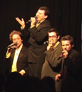 Das männliche Dasein gesanglich auf die Schippe genommen (Foto:Richter)(hr) "Männer ohne Nerven" gastierten am vergangenen Freitag, 11. November, auf Einladung des Kulturlabors in der ausverkauften Galerie Artgerecht. Zu hören gab es perfekten A-Cappella-Gesang, dargeboten in bester Comedy-Manier. In den Songs und den Geschichten dazwischen schilderten die Vier Pleiten, Pech und Pannen ihres männlichen Daseins - mitten aus dem Leben gegriffen und mit hohem Wiedererkennungswert fürs Publikum, das bestens unterhalten wurde.