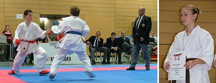 Nadine Kabel setzte sich im Kata Einzel der Jugend mit 27 Teilnehmern gewohnt souverän bis zum Poolfinale durch, wo sie zum wiederholten Mal durch Franziska Kurz aus Binswangen gestoppt wurde. In der Trostrunde ließ sie jedoch nichts mehr anbrennen und sicherte sich ungefährdet den dritten Platz. Damit hat sich Nadine Kabel wohl endgültig hinter den beiden dominierenden Schwestern Karolin und Franziska Kurz aus Binswangen in der baden-württembergischen Kata-Szene etabliert.