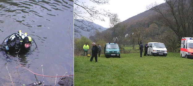 Spezialisten des Kampfmittelbeseitungsdienstes des LKA Stuttgart sowie das Rote Kreuz Eberbach begleiteten die Tauchgänge, die 70 Patronen ans Tageslicht beförderten.
