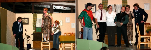 Solo mit Hindernissen Die Theaterschauspielgruppe des gemischten Chores "Frohsinn" Allemühl 1900 e.V. spielte in diesem Jahr die Komödie "Solo mit Hindernissen" für ihr begeistertes und pfeifendes Publikum. (Fotos: Böhm)(ub) Alljährlich steht die Theatergruppe des gemischten Chores "Frohsinn" Allemühl 1900 e.V. auf der Bühne und zeigt ihre Künste vor begeistertem Publikum.