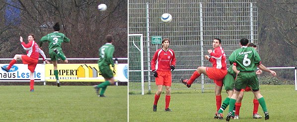Bereits in der 7. Minute fiel bei Schmuddelwetter das 0:1 durch Darek, der einen direkten Freistoß verwandelte. Der SV Eberbach drückte in der Folge, jedoch ohne nennenswerten Erfolg. In der 14. Minute scheiterte Schuster am Tormann, sechs Minute später schießt Sahin knapp am Tor vorbei. Der SV Eberbach nutzte die Schwächen von Altneudorf nicht aus. In der 25.Minute scheiterte Sahin wiederum am Torwart. Nach einer weiteren Chance durch Sahin wird der SV Eberbach erst kurz vor der Halbzeit mit dem 1:1 durch durch den selben Spieler belohnt.