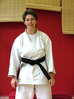 Begonnen hat Birgit Mathes mit dem Karate bereits 1986. Nach längerer Pause fand sie 1991 wieder den Einstieg in das regelmäßige Training und bildete den Kern der immer noch kleinen Erwachsenengruppe. Seit dem letzten Jahr leitet sie freitags die Kindergruppe. Gemeinsam mit ihrem Trainer Peter Steinbauer hat sie seit Mai diesen Jahres eine Erwachsen-Anfängergruppe ins Leben gerufen, die mit ihrer ältesten Teilnehmerin, einer 78-jährigen Eberbacherin, bestätigt, dass Karate in jedem Alter begonnen werden kann.