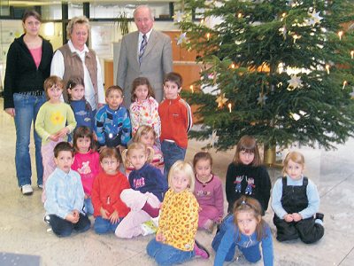(jc) (cs) Viel Freude beim Christbaumschmücken hatten die Kinder vom katholischen Kindergarten St. Elisabeth, Eberbach in der Kundenhalle der Sparkasse Neckartal-Odenwald in Eberbach. Mit selbstgebasteltem Christbaumschmuck verzierten sie den stattlichen Weihnachtsbaum. Als vorweihnachtliches Geschenk durften die Kinder von Direktor Wolfgang Kleeberger eine Spende für den Kindergarten entgegennehmen.