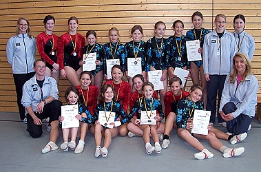 Erfolgreicher Gauligaabschluss für die Eberbacher Turnerinnen (Foto: privat)(bro) (rd) Turbulent ging es am Samstag, 10. Dezember, in der Hohenstaufen-Sporthalle zu, nachdem die zahlreichen Turnerinnen des Heidelberger Turngaus zu ihrem gemeinsamen Gauligaendkampf angetreten waren. Gleich zwei spannende Wettkämpfe konnten die Zuschauer an diesem Vormittag verfolgen. Zum einen die A-Schülerinnen Jg.93/94 Wettkampfklasse A5, zum anderen die Kreisklasse A , B6. Zweieinhalb Stunden lieferten sich die Turnerinnen spannende und abwechslungsreiche Wettkämpfe. Während bei den A-Schülerinnen acht Mannschaften am Start waren, turnten die Mädchen B6 in vier Mannschaften gegeneinander. Bei der anschließenden Siegerehrung konnten sich erfreulicherweise gleich beide Eberbacher Mannschaften als Vizemeister präsentieren. Beide Mannschaften waren konstant mit großem Eifer bei der Sache und zeigten glanzvolle Leistungen sowie großen Teamgeist. Somit durften auch beide Mannschaften A-Schülerinnen (Tamina Dengel, Samantha Enseli, Ruth Helm, Sandra Hoffmann, Anna-Lena Kappes, Sabine Langhardt, Fiona Nohe, Isabelle Seibert, Janna Stupperich und Ann-Kathrin Wiegel), Mädchen B6 (Nicole Beldermann, Sonja Beldermann, Daniela Berg, Franziska Böhm, Anna-Lena Teller, Vanessa Reubold, Manuela Vay und Natascha Weiß) die Winterrunde mit wohlverdienter Silbermedaille beenden.