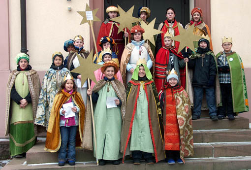 (tb) Insgesamt 43 Kinder und 20 Jugendliche und Erwachsene von der Katholischen Pfarrgemeinde St. Maria Waldbrunn machten in diesem Jahr bei der Sternsingeraktion des Kindermissionswerks "Die Sternsinger" mit. Traditionell wurden die Sternsinger im Rahmen des Dreikönigsgottesdienstes, den Pater Kasimir Fieden in der Pfarrkirche St. Maria zelebrierte, in alle Waldbrunner Ortsteile entsandt, um so Geld für das jährlich wechselnde Beispielland zu sammeln. In diesem Jahr war es Peru. Dort werden vor allem Projekte gefördert, die die Situation arbeitender Kinder verbessern helfen, z.B. durch Errichtung von Unterrichtsräumen, Nachhilfeunterricht und Betreuung der Kinder.
