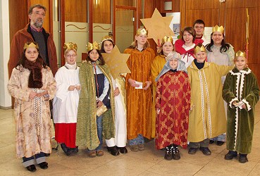 Sternsinger singen für Bankkunden zugunsten einer Schule in Äquador (Foto:Volksbank Neckartal)(jc) (vbn) Erfreut zeigten sich die Kunden der Volksbank Neckartal eG vom Auftritt der Sternsinger der Eberbacher Pfarrei St. Josef. Im Rahmen der diesjährigen Aktion Dreikönigssingen haben sich die Sternsinger in Begleitung ihres Gruppenleiters Bernhard Schell entschlossen in ihrer Freizeit für eine kirchliche Schule in Concordia/Ecuador und damit für die Kinder der dortigen Ureinwohner zu singen und Spenden zu sammeln. Die Eberbacher Sternsinger wollen in diesem Jahr an die guten Spendenergebnisse des Vorjahres anknüpfen. Marketingleiter Hugo Sablowski dankte im Namen der Geschäftsleitung Bernhard Schell und den engagierten Kindern für ihren Auftritt in der Bank, die mit einer Spende gerne ihren Teil zum Gelingen der Sternsinger-Initiative beitrage.