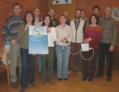 Evangelische Kirchengemeinde in Eberbach strebt Umweltzertifikat an Das "Umweltteam" der Evangelischen Kirchengemeinde in Eberbach. (Foto:Wörner)(tw) Kirchengemeinderätin Heike Thieme wurde im vergangenen Jahr durch die Evangelische Landeskirche in Baden (ekiba) auf den "Grünen Gockel" aufmerksam. Nach erfolgreichen Projekten in den Landeskirchen in Württemberg und Bayern gibt es seit 2004 auch ein Pilotprojekt "Grüner Gockel" der Evangelischen Landeskirche in Baden beim Evangelischen Oberkirchenrat in Karlsruhe. Der Leiter der Geschäftsstelle des Pilotprojekts André Witthöft-Mühlmann kam nach ersten Interessensbekundungen auch zu einer Vorstellung des "Grünen Gockels" nach Eberbach. Hier entschied man sich beim Pfarrgemeinderat recht schnell für eine Durchführung und ging das Projekt an. Der "Grüne Gockel" wurde auf der Grundlage der Europäischen Umweltaudit-Verordnung EMAS, einem Industriestandard, speziell für Kirchengemeinden weiterentwickelt. Die Zertifizierung ist nicht so kostspielig und der Aufwand für Formalitäten und Dokumentationen geringer als bei EMAS bei gleicher Wirkung.
