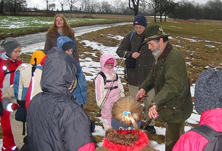 Spuren und Fährten im Schnee (Foto:privat)(hr) (uk) Am Samstag, 21. Januar, traf sich die NAJU-Kindergruppe am Fuße des Katzenbuckels, um unter der Anleitung von Gerhard Neureither eine Spuren- und Fährtensuche zu erleben.