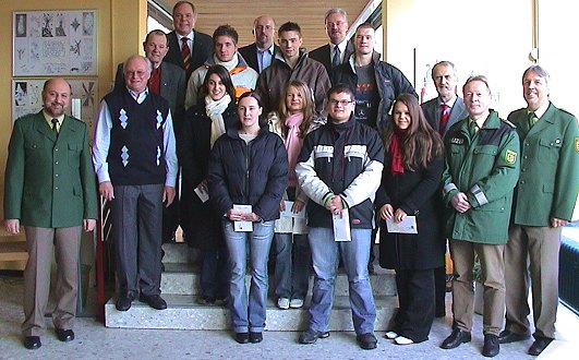 Rotarier spendierten Fahrsicherheitstraining Die Gewinnerinnen und Gewinner mit den Vertretern des Rotary Clubs, der Polizei und der Schulen. (Foto:C.Richter)(cr) Am Eberbacher Hohenstaufen-Gymnasium (HSG) war vom 16. bis 19. Januar die Ausstellung "Gib acht im Verkehr - Junge Fahrer" zu sehen. An allen Tagen waren Polizeibeamte vorort und informierten insgesamt 560 Schülerinnen und Schüler der Theodor-Frey-Schule und der Oberstufe des HSG über die Themen Geschwindigkeit, Alkohol, Drogen und Motorradfahren. An einem Verkehrsquiz nahmen mehr als 360 Besucher teil. Die zehn Fragen wurden von 44 Schülerinnen und 34 Schülern richtig beantwortet. Neun von ihnen wurden ausgelost und erhielten heute ein Geschenk: Der Rotary Club Eberbach, vertreten durch den Präsidenten Dietrich Müller sowie Bruno Schmitt und Robert Moray, spendierte jedem Gewinner einen Gutschein für ein Fahrsicherheitstraining auf dem ADAC-Gelände in Heidelberg im Wert von je 84 Euro.