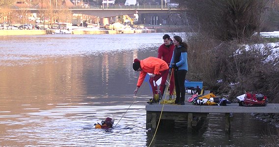 Härtetest für DLRG-Nachwuchs-Taucher (Foto:privat)(hr) (js) Wer ein richtiger Einsatztaucher bei der DLRG werden möchte, muss auch im Winter ins kalte Wasser. Bei drei Grad Wasser- und zwei Grad Lufttemperatur mussten dieser Tage auch die drei Einsatztaucher-Anwärter in die Fluten. Die drei, die im Sommer ihre Prüfung ablegen werden, sollten Erfahrung beim Tauchen bei eisigen Wassertemperaturen sammeln. Eine heiße Dusche und der wärmende Kaffee waren dann die ersehnte Belohnung.