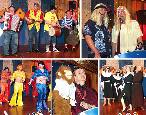 Nach einer Pause ging es dann weiter mit dem närrischen Zwingenberger Narrenexpress bei dem traditionell die Kids vom Zwingenberger Jugendraum auf der närrischen Bühne mitmischen. In aufwändig hergestellten Kostümen zeigten sie einen in Eigenregie erstellten Showtanz und ernteten reichlich Beifall. Danach hieß es auch schon Bühne frei für zwei Originale der Zwingenberger Fastnacht. Als "Schorsch und Seppl" zogen Klaus-Jürgen Hansmann und Herbert Mayer ein ums andre Mal zogen sie über das Ortsgeschehen in der Bütt her und waren wie gewohnt für zahlreiche Brüller in der Zwingenberger Narrenhütte gut. Danach konnte das Tanzpaar Andrea Schoisser und Christian Wolpert von den Bienemer Weffzen eindrucksvoll beweisen, dass ihr Sieg bei den Narrenringmeisterschaften kein Zufall war. Eine Riesenidee hatten danach die AH des SV Zwingenberg/Neckargerach, die eine unter dem Motto "Los Chaos aus Jamaica in Rasta-Kostümen eine karibische Playbackshow auf die Beine stellten und sogleich für eine super Fastnachtsstimmung sorgten. Ebenso bunte Kostüme und fastnachtliche Stimmung waren dann beim Showtanz der Großen Garde des NCV angesagt, als sie in gekonnter Manier ihren diesjährigen Showtanz präsentierte, der die Besucher durch die fünf Kontinente führte.