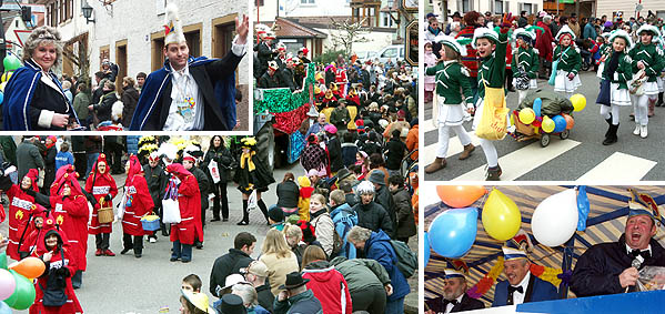 Jubel, Trubel, Heiterkeit in den Straßen von Neckargerach Riesenstimmung herrschte beim großen Fastnachtsumzug des NCV Gericher Stromer heute in Neckargerach. Unsere Fotos zeigen das große Prinzenpaar des NCV, Heike und Jens Urbicht, einen Blick in die gut gefüllten Straßen von Neckargerach, sowie die kleine Garde und den Elferrat des NCV Gericher Stromer mit Sitzungspräsident Jörg Hoffman (Mitte). (Fotos: Baumgartner)