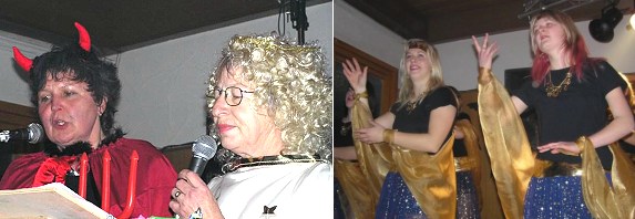 Das "Engelsche" (Ingrid Strauch) und das "Teufelsche" (Gabi Wien) gaben in Ihrem Vortrag wieder einiges zum Besten, was sich in mehreren Lachsalven vernehmen lies.