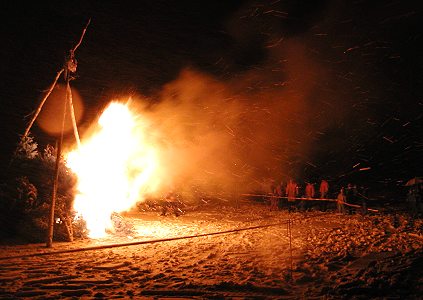 Traditionelle Fastnachtsfeuer zum Winter-Comeback Eiskalter Wind und reichlich Neuschnee auch in Friedrichsdorf, wo auf der Heidewiese das Feuer loderte. (Foto:Claussen)(jc) Rechtzeitig zum Abbrennen der traditionellen Fastnachtsfeuer ist der Winter mit Schneegestöber in die Region zurückgekehrt. Laut Wetterbericht soll er auch in den kommenden Tagen unverbrannt weiter sein Unwesen treiben. Wegen des ungemütlichen Wetters waren heute weit weniger Besucher bei Fastnachtshaufen und Feuerrädern zu zählen als sonst üblich. In den höheren Lagen war bis zum Abend knapp zehn Zentimeter Neuschnee gefallen.