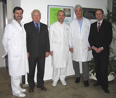 Krankenhaus-Leitung für drei Jahre neu bestellt Von rechts Betriebsleiter Martin Hildenbrand, Stv. Ltd. Krankenhausarzt Dr. Wolfgang Jupe, Ltd. Krankenhaus-Arzt Dr. Helmut Reinhard, Regionalleiter für die GRN Einrichtungen in Sinsheim und Eberbach Klaus Eiermann und Pflegedienstleiter Dieter Koslowski. (Foto:privat)(cr) (grn) In seiner ersten konstituierenden Sitzung hat der Aufsichtsrat der GRN Gesundheitszentren Rhein-Neckar gGmbH Dr. med. Helmut Reinhard, Chefarzt der chirurgischen Abteilung des Krankenhauses Eberbach, erneut zum Leitenden Krankenhausarzt für die Dauer von drei Jahren bestellt. Zu seinem Stellvertreter wurde in derselben Sitzung der Chefarzt der urologischen Abteilung, Dr. med. Wolfgang Jupe, für die gleiche Zeitdauer ebenfalls erneut bestellt. Nach den Bestimmungen des Landeskrankenhausgesetzes Baden-Württemberg ist für jedes Krankenhaus eine Betriebsleitung zu bilden. Der Betriebsleitung gehört ein Krankenhausdirektorium an, das sich aus dem Leitenden Arzt, dem Leiter des Wirtschafts- und Verwaltungsbereiches und der leitenden Krankenpflegekraft zusammensetzt. Der Leitende Krankenhausarzt gehört dem in der gGmbH neu gegründeten so genannten medizinischen Fachbeirat an, der für die grundsätzlichen medizinischen Belange der Gesellschaft eingerichtet wurde. Der Fachbeirat hat die Aufgabe, eine enge Abstimmung und Kooperation zwischen den medizinischen Fachabteilungen innerhalb des einzelnen Krankenhauses und der Krankenhäuser untereinander zu fördern. Der medizinische Fachbeirat hat die Geschäftsführung zu unterstützen in der Umsetzung wichtiger medizinischer Grundsatzfragen.