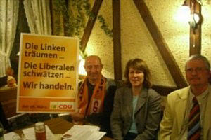 Landtagsabgeordnete Elke Brunnemer brachte ein neues Wahlplakat mit: Die Linken träumen - Die Liberalen schwätzen - Wir handeln CDU.