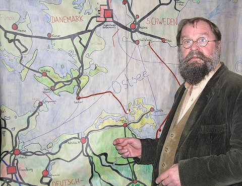 Nach Grußworten von Gunter Mayer als Gastgeber im RGE-Haus und Bibliotheksleiterin Hildegard Spengel als Veranstalterin des Abends, machte sich Klaus Müller an die Schilderung seiner "Pilgerreise nach Syrakus, zu den Quellen des Abendlandes". Delius habe die Geschichte völlig wahrheitsgetreu geschrieben, bestätigt er. Nur seine Rostocker Privatsphäre habe er, auf eigenen Wunsch, künstlerisch verfremdet. Und Paul Gompitz, wie der Schriftsteller die Hauptfigur seines Buches genannt hat, ist ihm manchmal "än bissl zu softig". - "Mensch, das sollst du sein?", fragt sich da schon mal das sächsische Urgestein mit dem grimmigen Blick.