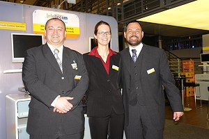 Erfolgreicher CeBIT-Auftritt des Eberbacher IT Unternehmens Dejan Foro, Kristina Färber, René Dürbeck (v.l.)–Lösungsberater der intellecom GmbH auf der CeBIT (Foto:privat)(jc) (fr) Die weltweit größte IT Fachmesse CeBIT schloss letzte Woche mit äußerst positiver Resonanz ihre Pforten. Cirka 6.300 Aussteller aus 71 Ländern boten auf 300.000 Quadratmeter Fläche Produkte und Lösungen rund um die Informationstechnologie, Telekommunikation und Unterhaltungselektronik. Weit über 300.000 Besucher ließen sich nach der Eröffnungsrede von Bundeskanzlerin Merkel in Hannover anlocken.